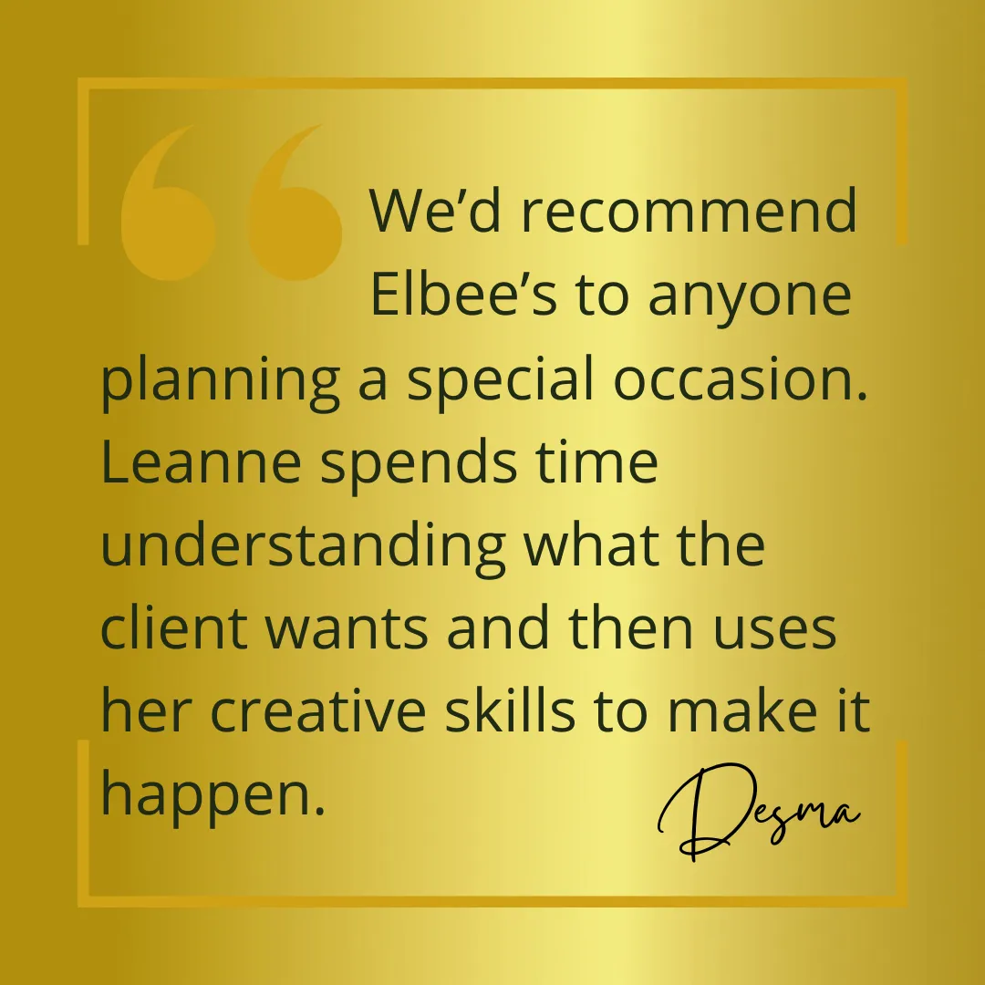 With a passion for personalised decor and a keen eye for detail, we bring creativity and craftsmanship to every project. My background in floristry, crafting, and bridal gown design ensures a unique blend of skills that sets Elbee Events apart.
